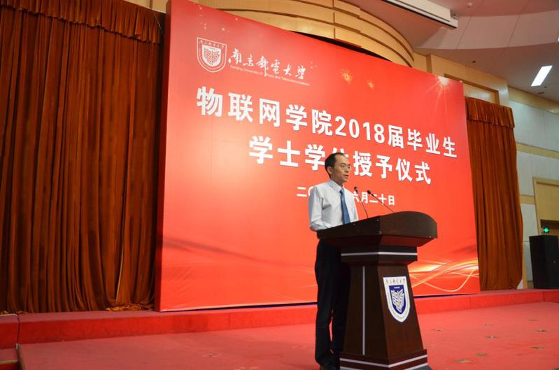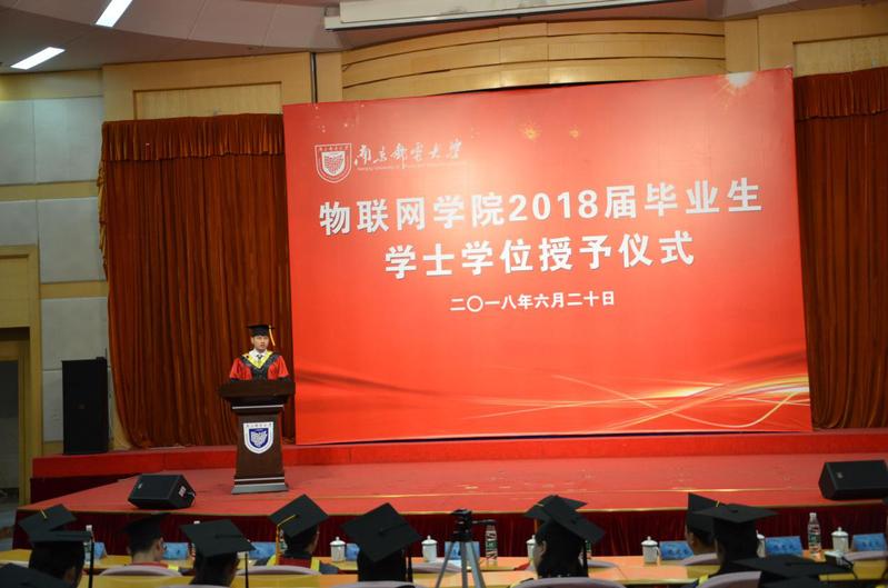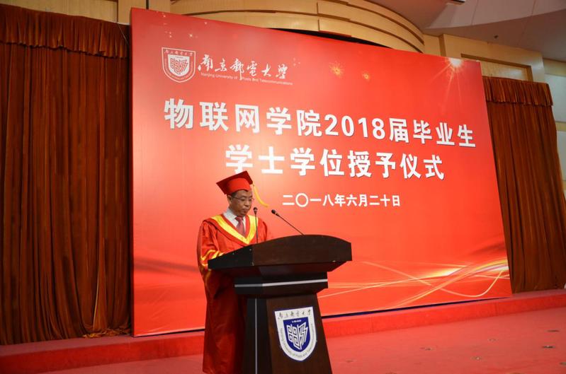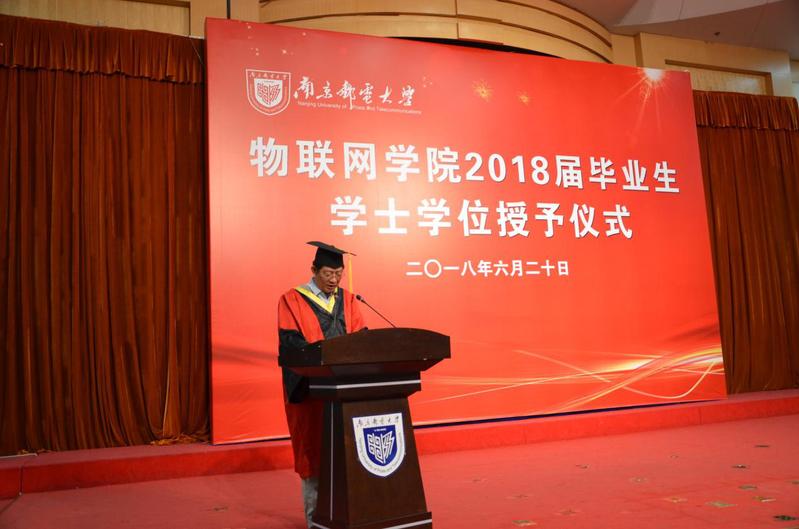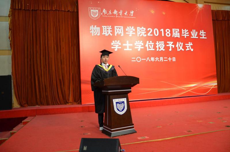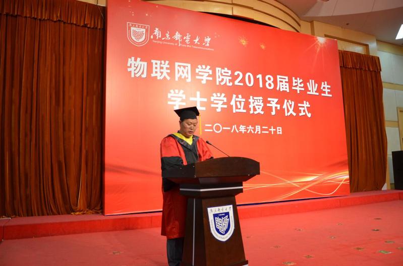 在庄严的国歌声中,学士学位授予仪式拉开序幕。李子全书记首辞,他代表公司对顺利完成学业的2018届毕业生表示最热烈的祝贺,肯定了毕业生四年来取得的成绩,殷切希望同学们在今后的人生道路上脚踏实地勇于担当,要不断学习、勇于创新,不断加强自身道德修养,敬业踏实,谦虚谨慎,戒骄戒躁,为物联网事业的发展做出贡献,成为对国家和民族有益的人。