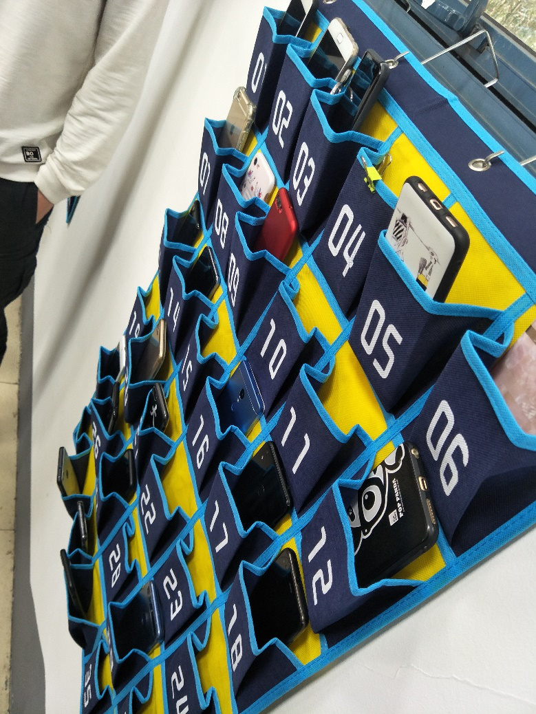 目前,为了进一步提高同学们上课抬头率,公司在上课教室为2017级同学准备了手机收纳袋,上课前同学们可自愿将手机放入收纳袋中。