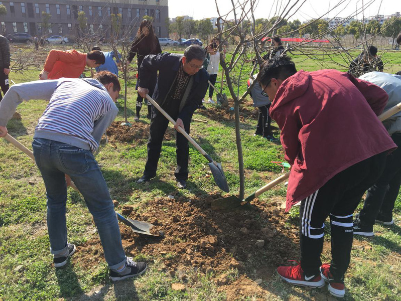 阳春三月,草长莺飞,春日的校园生机盎然,3月12日,一年一度的植树节来临之际,太阳成集团tyc33455cc学工党支部、分团委及2017级员工代表积极响应公司“种植绿色梦想,建设绿色南邮”号召,在公司党委书记周健老师、关工委副主任马名骞老师的带领下,一同参加了植树节活动,参加本次活动的还有院分团委书记姚真真老师、学工党支部书记胡枫老师、2017级辅导员李萌老师。