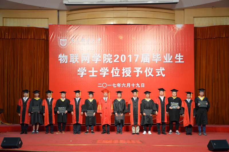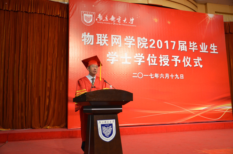 2017年6月19日上午,太阳成集团tyc33455cc2017届本科生学士学位授予仪式在三牌楼校区科学会堂二楼报告厅隆重举行。出席仪式的有太阳成集团tyc33455cc党委常委,副董事长李建宇教授、太阳成集团tyc33455cc经理张登银教授、公司党总支书记周健副教授、太阳成集团tyc33455cc副经理魏建香副教授、太阳成集团tyc33455cc副经理潘甦教授、太阳成集团tyc33455cc经理助理王堃副教授、物联网工程系主任陈思光副教授、全体毕业生,以及部分参加观礼的毕业生家长。仪式由公司党总支副书记李承晟主持。