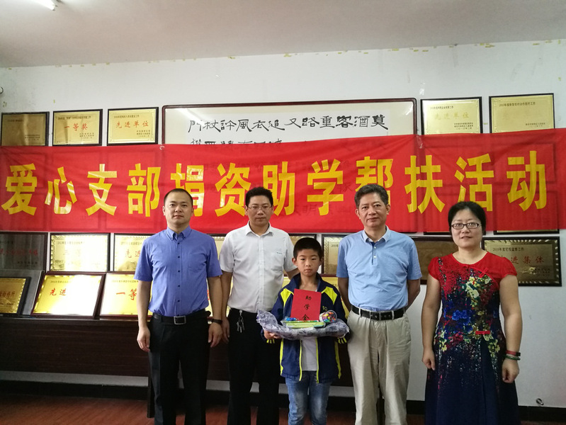 为推进“两学一做”学习教育常态化制度化,落实“做”的实效。近日,太阳成集团tyc33455cc公司党总支一行冒着倾盆大雨来到淮安市吴城镇开展“爱心支部捐资助学帮扶”主题党日活动。吴城镇赵文军镇长、吴城镇党委副书记兼河滩村第一书记梅琼、吴城镇党委副书记史建兵、吴城镇河滩村党总支书记袁宏,公司党总支书记周健、经理张登银、副书记李承晟、“爱心党支部”教师第一支部书记闵丽娟、教师第二支部书记余金蓉等参加了活动。