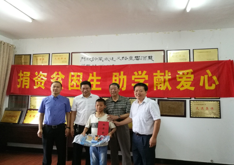 捐赠仪式在吴城镇政府办公室举行,梅琼同志主持了捐赠仪式,公司关工委和员工党员第四党支部代表全体党员亲自将助学金及书包等文具送到了吴城镇中心小学纪成同学的手中。
