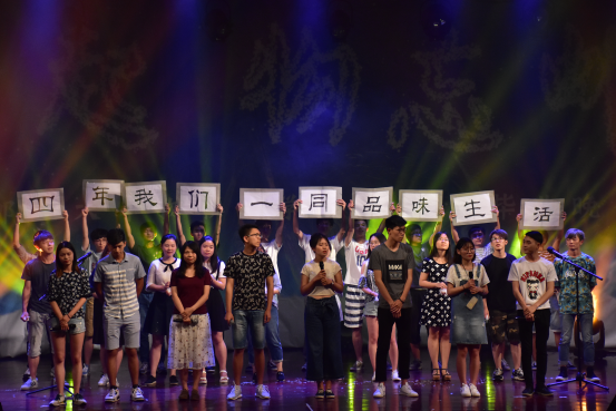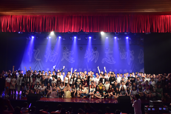 歌舞类节目也毫不示弱。858街舞社和大四毕业生的街舞表演,让台下观众看得兴致勃勃。大四辅导员李萌老师的吉他弹唱《再见》用轻快而饱含深情的方式演绎出离别的感伤与不舍,真挚表达了对员工的美好祝福。令人印象深刻的是晚会最后的“彩蛋”——员工会合唱,同学们用歌声唱出了对母校的感激和眷恋。礼炮声中,台上同学挥手喊出“我们毕业了!”,毕业生们登上舞台,与最亲爱的辅导员和朝夕相处的同学留下珍贵的合影。