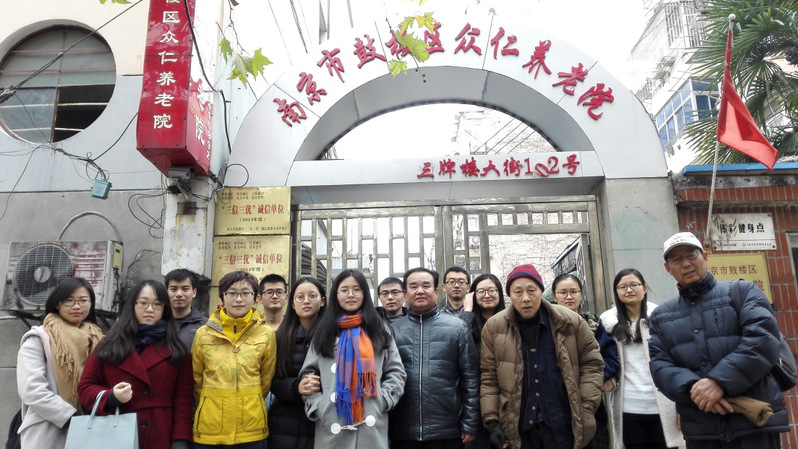 2016年12月23日上午,老同志和党员们一行来到“南京市鼓楼区众仁养老院”,受到了敬老院工作人员的热烈欢迎。党员们首先为老人们送上了水果、饼干等慰问品,随后党员们来到床前与老人们叙谈,聆听老人们讲述他们的故事,了解老人们的身体状况和日常生活。90多岁高龄的魏奶奶精神矍铄地跟大家挥手问好;67岁的张爷爷给大家讲述年轻时南大求学、作为高级经济师出国交流,为国贡献的往事;……党员们与老人们热情洋溢的交流让敬老院充满了热闹祥和的气氛。