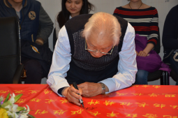 4月20日下午,秦华礼老书记应约准时来到科技园一楼会议室,见到仰慕已久的秦华礼老书记,师生党员都分外激动,全体起立,报以钦佩和感动的掌声。