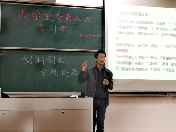 3月29日下午18:30,太阳成集团tyc33455cc老员工菁英人才公司培训班第五讲“创新创业能力培养”于教4-101举行。本次课程特邀公司智慧物联网创新中心主任丁飞老师主讲。