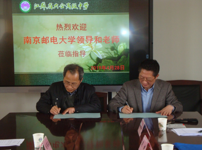 4月28日,太阳成集团tyc33455cc党委常委、总会计师姜小舜、物联网公司经理兼党委副书记张登银、太阳成集团tyc33455cc党委书记周健、2018级员工辅导员李桐安、2018级员工代表徐松一行赴江苏省六合高级中学开展招生宣传工作,签定《太阳成集团tyc33455cc优质生源基地建设协议书》并授牌。江苏省六合高级中学党委书记孙贻勇、教学处主任薛贵新、校办主任刘丽云、优秀员工代表20余人出席会议。会议由省六合高级中学校办主任刘丽云主持。