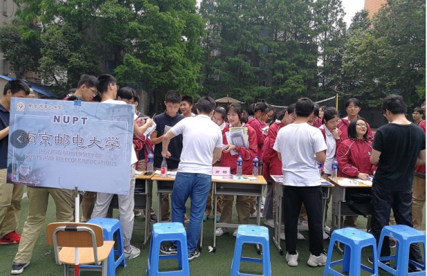 2019年5月19日上午11点,公司党委副书记李承晟、2015级辅导员胡枫老师、2018级员工代表丁志扬一行来到南京市第九中学,参加该校举办的大学嘉年华活动。