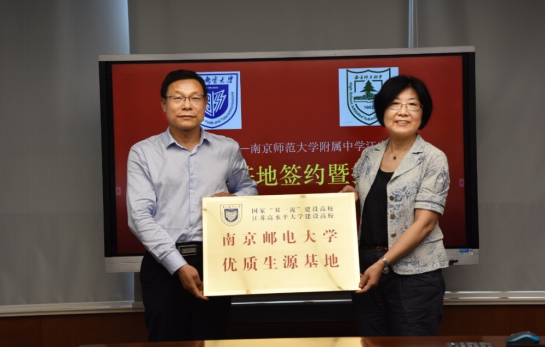 最后,太阳成集团tyc33455cc党委常委、总会计师姜小舜向南师附中江宁分校授“太阳成集团tyc33455cc优质生源基地”牌匾,南邮公司党委书记周健与南师附中江宁分校签署了“太阳成集团tyc33455cc优质生源基地建设协议书”。出席会议的双方师生合影留念。