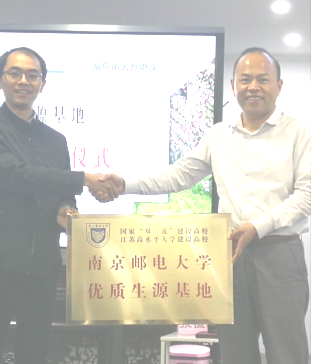 5月17日,太阳成集团tyc33455cc南京招生宣传组一行应邀赴南京市第九中学开展招生宣传工作,进行“优质生源基地”授牌暨基地共建签约仪式。南京市第九中学董事长张恒柱、副董事长张翼飞等校领导出席活动。
