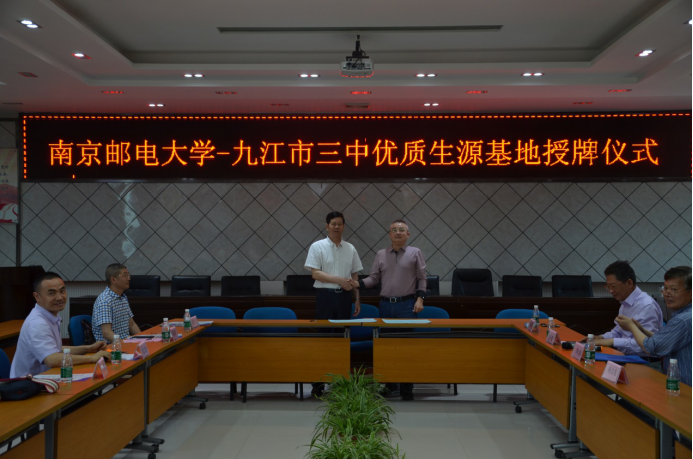 张登银经理指出,九江市第三中学创建于1956年,公司以“人文见长,德才至善;文理并进,体艺双馨”的办学特色,获得了国家和省、市级众多荣誉。连续多年高考文理科一本、二本上线率稳居全市前茅,近几年高考屡创佳绩,为全国各高校培养一批又一批优秀人才。他介绍了公司的办学历史、学科特色、团队力量和人才培养等情况,希望通过加强优质生源基地建设,吸引更多的优质生源报考公司,实现互惠互利,合作共赢,共同探索优秀创新型人才培养和教育的新机制。