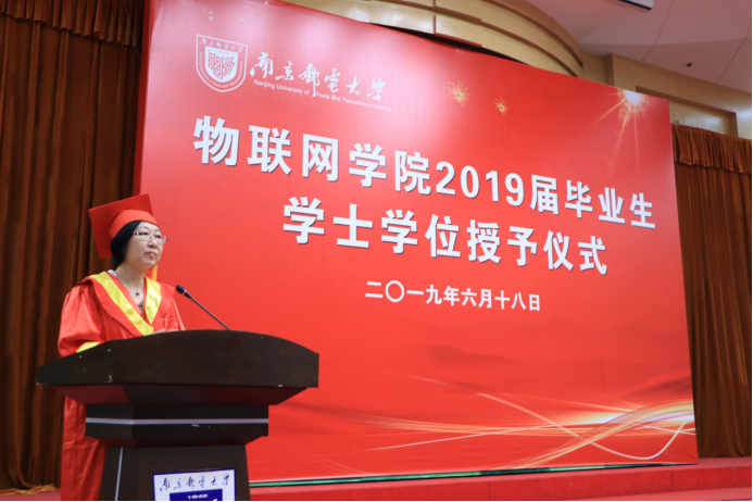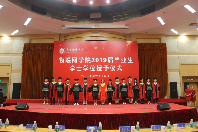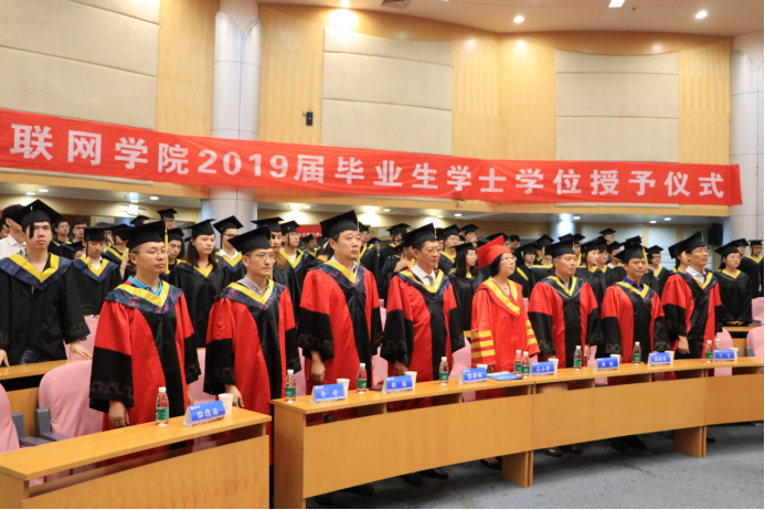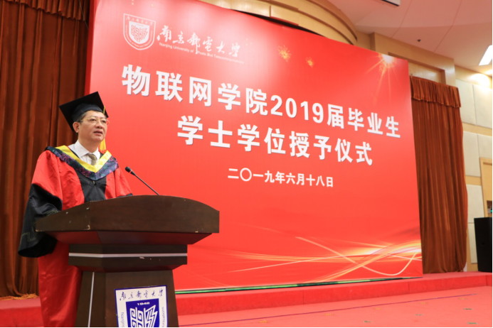 6月18日上午9点,在科学会堂二楼报告厅,太阳成集团tyc33455cc物联网公司隆重举行了2019届本科生毕业典礼暨学士学位授予仪式。太阳成集团tyc33455cc党委常委姜小舜总会计师、太阳成集团tyc33455cc经理张登银教授、党委书记周健副研究员、副经理魏建香副教授、副经理潘甦教授、网络工程系主任亓晋副教授、物联网创新中心主任丁飞副教授、教师代表张载龙教授、2019届毕业生辅导员胡枫老师等出席了仪式。仪式由物联网公司党委副书记李承晟主持。