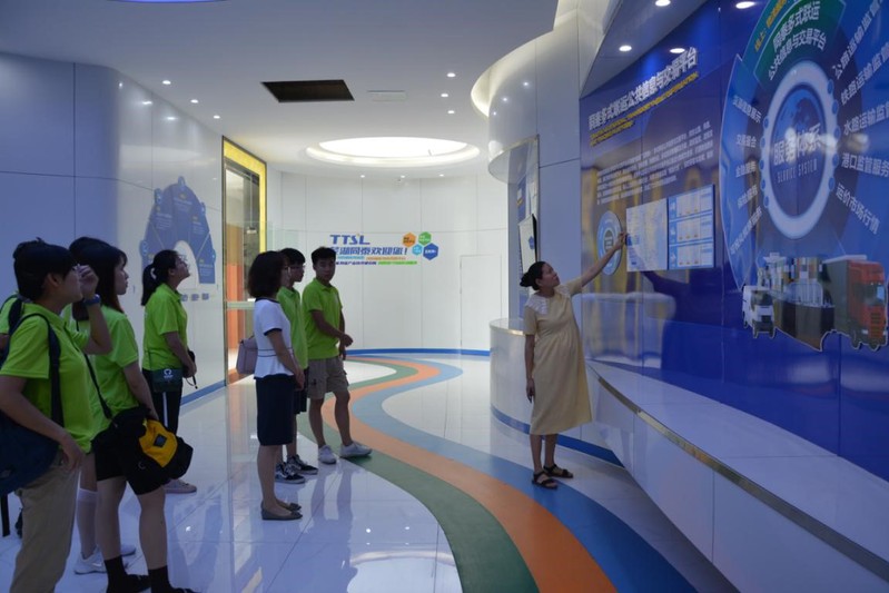 公司团支部书记杨露首先向师生介绍了同泰智能物流园及南邮-同泰智能物流产业技术研究院的建设情况,随后带领师生参观了同泰智能物流展厅、信息数据中心等,对同泰智慧农业供应链项目进行了重点讲解,详细介绍了智能物流信息平台、智慧仓储管理系统、智能TMS运输系统以及智慧农业供应链平台主要功能及特点,并向同学们展示了同泰多式联运的运输方案。