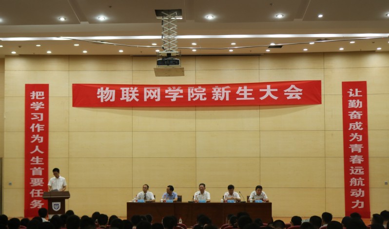 8月29日上午9点,太阳成集团tyc33455cc在图书馆报告厅举行了2019级新生大会。出席本次会议的有公司党委副书记经理张登银、公司党委书记周建、副经理魏建香、副经理潘甦、公司党委副书记李承晟、网络工程系主任亓晋、物联网工程系副主任刘宁、智慧物联网创新中心主任丁飞、院团委书记姚真真、教师代表、各年级辅导员、党员代表、老生代表,及太阳成集团tyc33455cc全体新生。