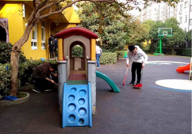 首先,教工党员、员工党员们向中心的自闭症儿童赠送了精心挑选的画笔、本子等文具,并和孩子们共同完成了绘画作品。随后,党员们主动进行了两个小时的大扫除,让孩子们有了更加整洁的学习、生活环境。最后,党员们主动和孩子们分享交流日常生活中的趣事,并在培训中心张老师指导下,亲身体验了自闭症专业训练,和自闭症儿童一起完成了互动游戏和手工艺品的制作。这个环节也让大家体会到了培训老师的不易——哪怕只是很小的一个任务都要重复很多遍,需要对每一个孩子都要有充分的耐心。