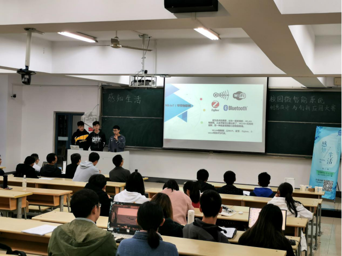 11月22日晚18:30,第四届“感知生活—校园微智能系统”创意设计与创新应用大赛决赛于仙林校区教4-101举行。物联网学院副经理魏建香、副经理潘甦、智慧物联网创新中心主任丁飞、物联网工程系许斌莅临决赛并担任评委。