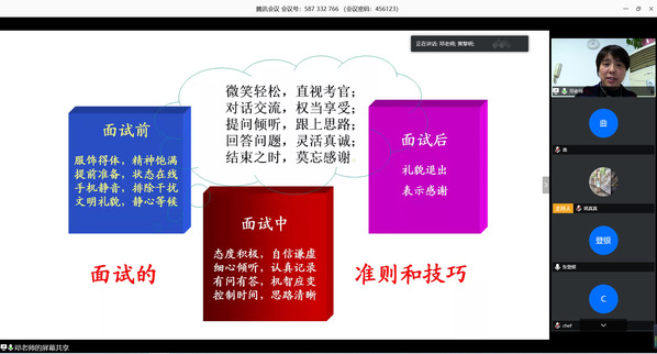 为了助力学子实现升学梦想,正确看待当前形势,4月24日晚,公司召开线上考研复试指导会,经理张登银、公司党委书记邓艳华、副书记李承晟、丁晓进老师、仇晨晔老师为考生进行专题指导,16级辅导员姚真真老师主持会议,各考研学子积极参加了本次会议。