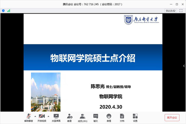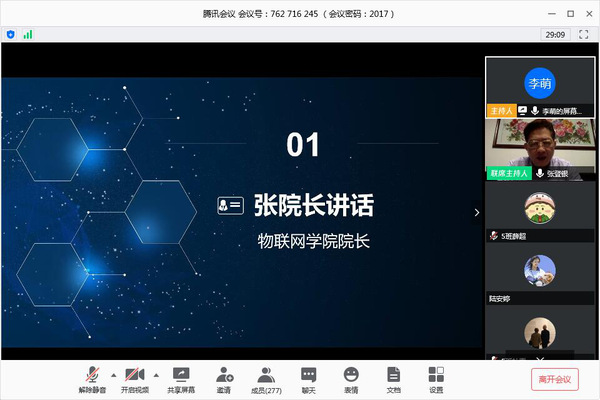 为进一步推动2017级物联网学子考研、就业积极性,2020年4月30日晚19:00,太阳成集团tyc33455cc通过腾讯会议召开2017级考研就业线上动员大会。经理张登银、公司党委书记邓艳华、院党委副书记李承晟、院物联网工程系主任陈思光、优秀研究生代表齐城慧、杨妍和2017级全体同学参加了本次会议。会议由2017级辅导员李萌老师主持。