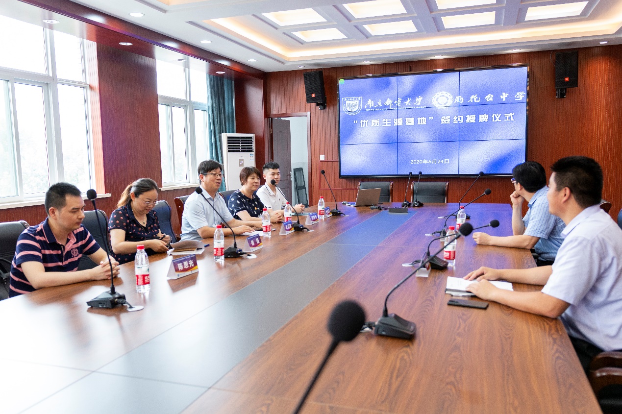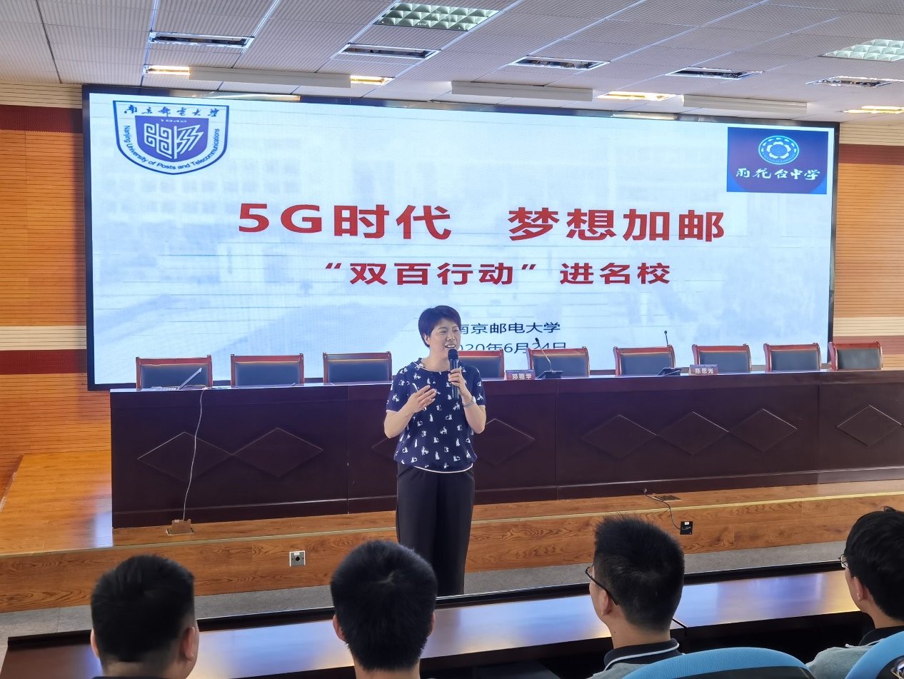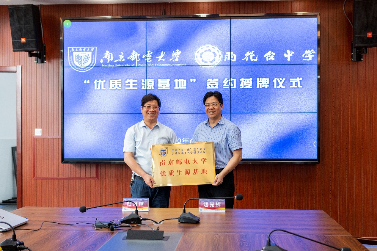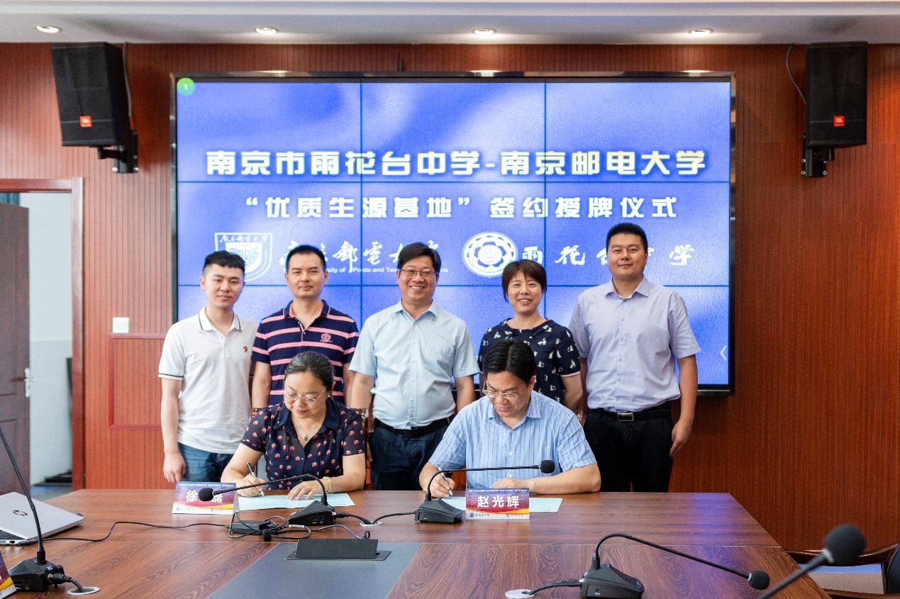 6月24日下午,公司“优质生源基地”授牌仪式暨“5G时代,梦想加邮之双百行动”在南京市雨花台中学举行。公司人才招聘处副处长杜月林、公司党委书记邓艳华、党委副书记兼副经理徐磊、物联网工程系主任陈思光、院办桂兴亮代表公司南京招生宣传组,与南京市雨花台中学董事长赵光辉、教师发展处副主任刘进全一同出席了活动,并进行了深入的座谈交流。