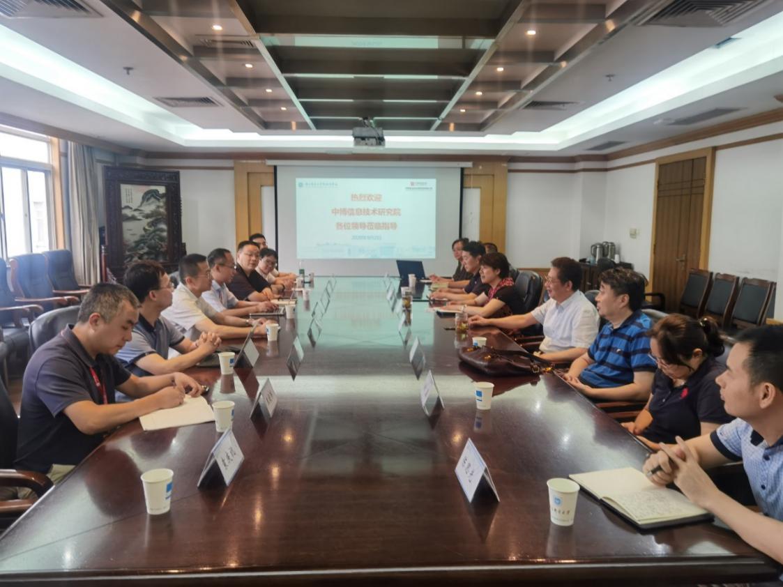 9月2日下午,中博信息技术研究院总经理侯建率班子成员一行7人莅临公司,双方在三牌楼校区科学会堂第三会议室洽谈产教融合校企合作。公司经理张登银、党委书记邓艳华等全体班子成员及各系主任出席接待并座谈交流。