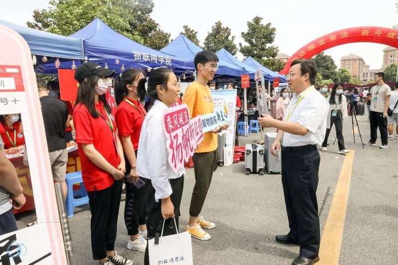 百名志愿者和同伴导师热情服务,发挥朋辈学长的示范引领。看,那里是物联网的“红色文化衫”,数百名志愿者身着红色文化衫,穿梭在校园各处。有新生的地方,就有咱们的志愿者。去年或是前年的报到日,他们是被迎接的小柚子,而现在,他们是爱的传递者。每个班级配备的小班主任都是高一年级的优秀学长,做好服务的同时答疑解惑,发挥示范引领作用。