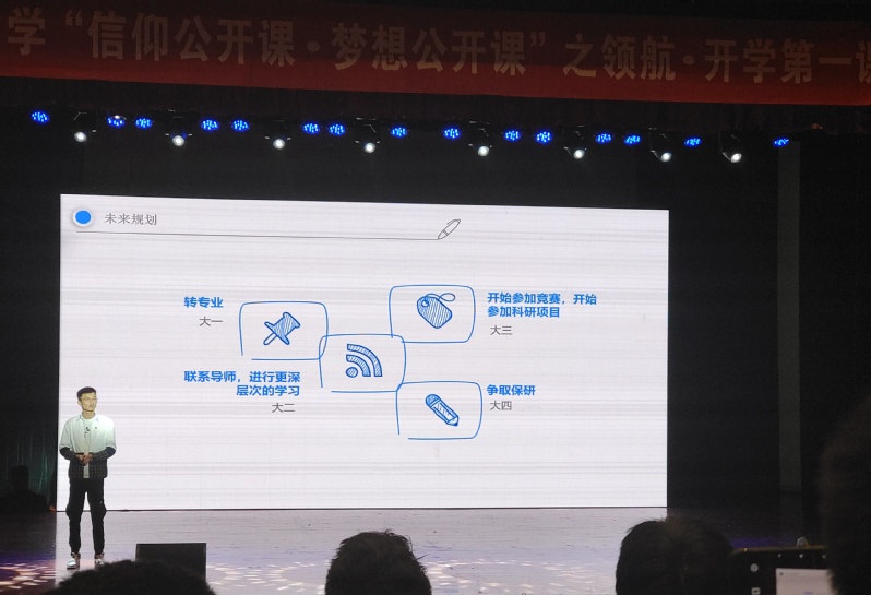 徐云起同学通过自己多次在海外实践的经历,着重强调了“社团”的重要性。社团活动可以丰富经历,开阔眼界,给同学们更多的机会展现自己。徐同学还强调了参加社团要有所取舍,要以兴趣为基础,以责任为根本。同时给了新生一个忠告:所有的活动都是要以一个好的成绩为基础的,学习是最重要的,不然就是本末倒置,适得其反。
