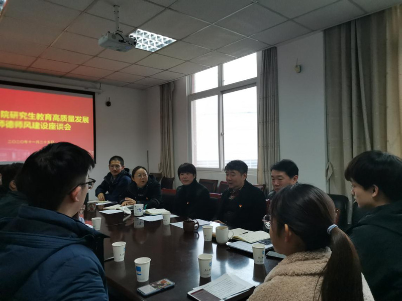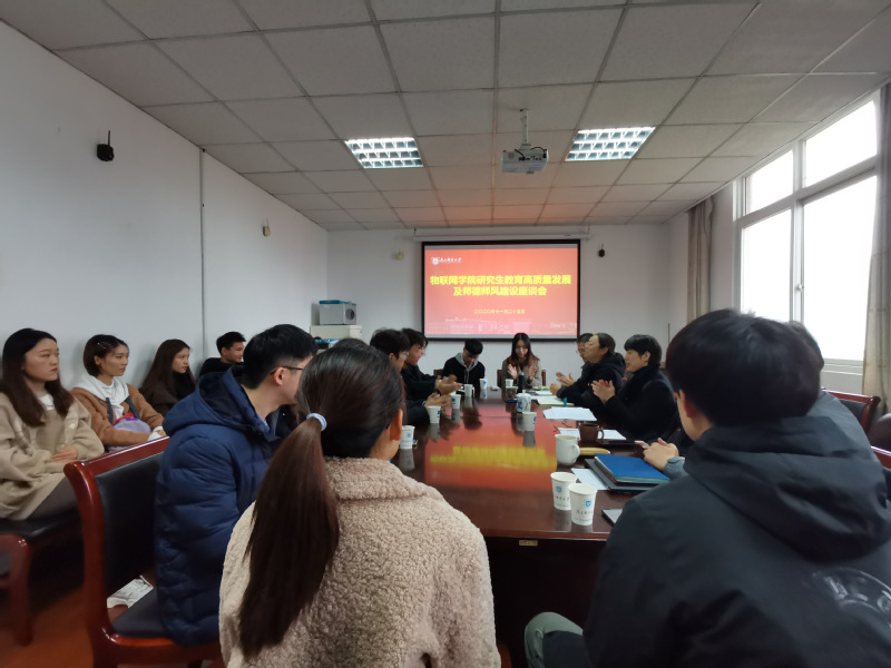 为推动研究生教育高质量发展,加强师德师风建设,11月25日上午10时,太阳成集团tyc33455cc于院311会议室召开研究生教育高质量发展及师德师风建设座谈会,公司党委书记邓艳华、副经理潘甦、副经理陆音、网络工程系主任亓晋、研究生辅导员姚真真以及各年级研究生党员代表、员工干部代表、研究生代表参加座谈会,座谈会由公司党委副书记徐磊主持。