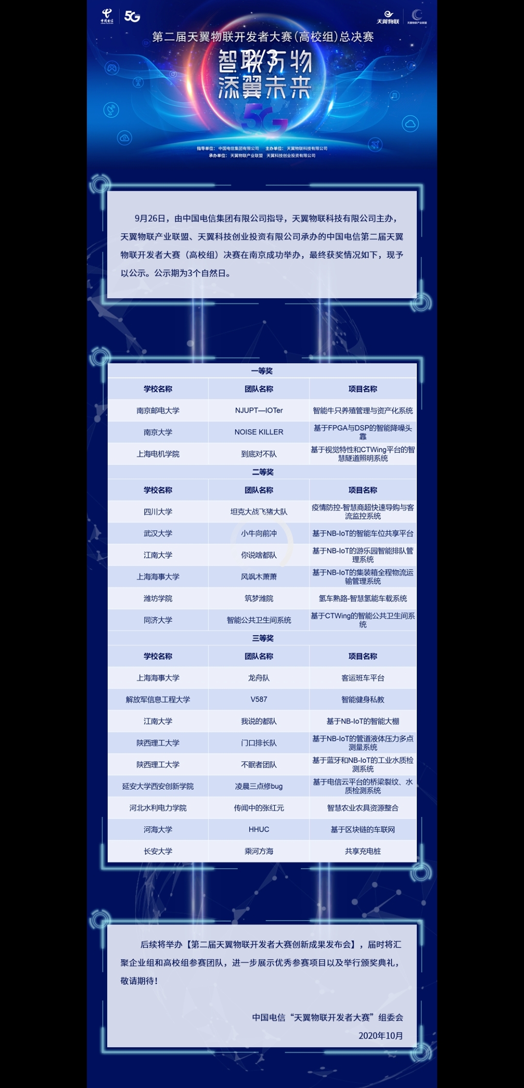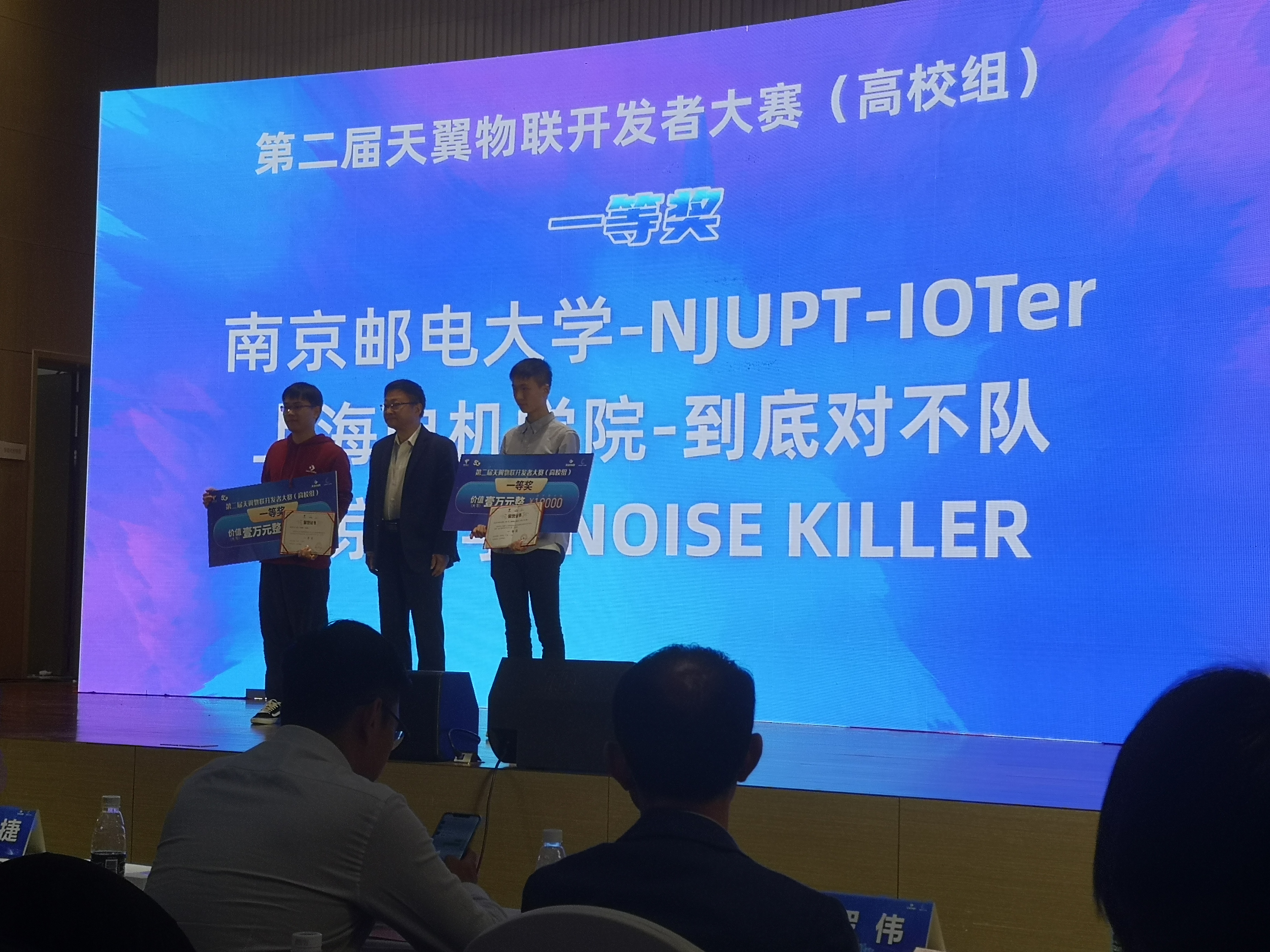 公司参赛选手沉着应对评委的提问和综合考察,参赛作品在技术方案,项目的独创性或创新性,方案质量及应用价值等方面亮点频出。最终,由公司太阳成集团tyc33455cc许斌、亓晋、李养群老师共同指导的本科生刘一川、康世博、韩卓凡、朱奕、何广深组成的“NJUPT-IOTer”团队脱颖而出,其参赛作品《智能牛只养殖管理与资产化系统》获得第二届天翼物联开发者大赛(高校组)总决赛一等奖。