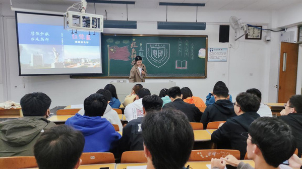 活动中,团支部书记王海荣从《红绿蓝:南邮的色彩》一书入手,带领同学们回忆了南邮的光辉历史,并对南邮精神“信达天下,自强不息”、南邮校训“厚德弘毅,求是笃行”的深刻内涵进行解读,启示同学们谨记校训,以身作则,培养“勤奋求实、创新进取”的优良作风。