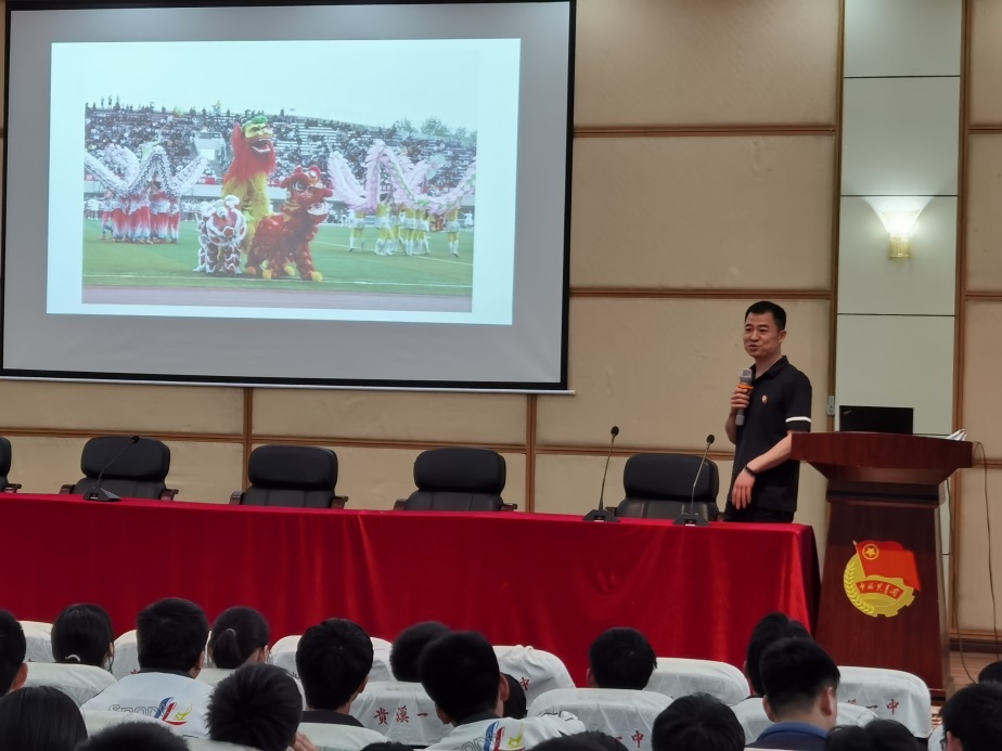 杨隽副教授给贵溪一中员工介绍南邮体育文化成果
