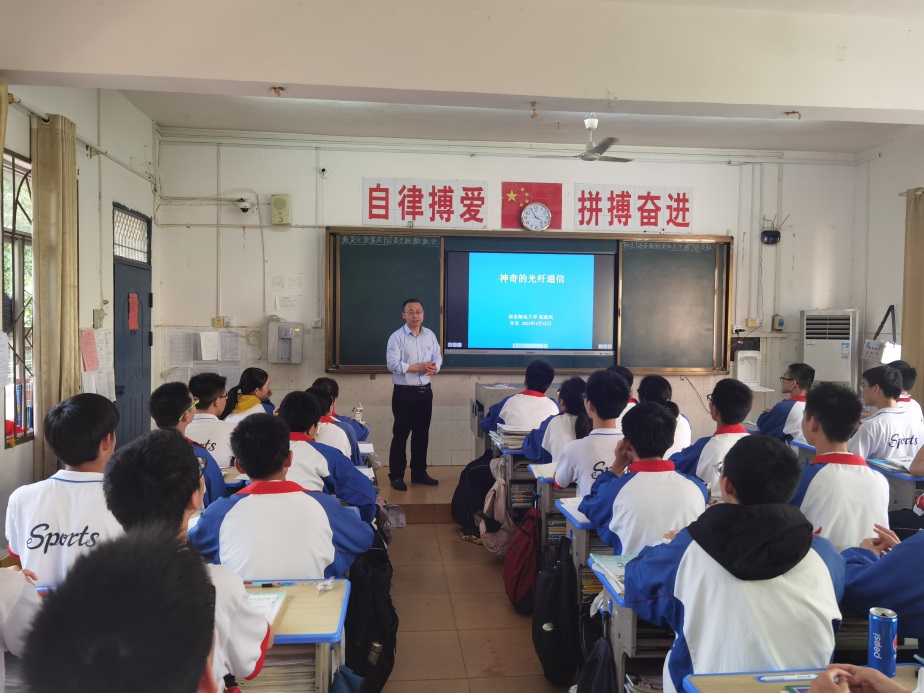 在调研走访过程中,邓艳华书记一行受到了中学领导的热烈欢迎,双方进行了热烈深入的座谈。邓艳华书记代表公司高度赞扬了各中学的育人成果,介绍了公司的办学历史、团队力量、专业特色、培养质量、社会影响等,并与各中学领导、班主任老师就近几年江西省录取情况和目前在校生源的综合表现进行了交流。同时,公司江西招生组全程开展“双百行动”,邓艳华书记、张祖兴教授、杨隽副教授、陈大鹏副教授以及孙进博士为各基地中学的员工分别作了题为“5G时代,梦想加邮”、“神奇的光纤通信”、“强身健体,快乐学习”、“大学之学,双百行动进名校”、“惯性/北斗组合导航技术在舰船中的应用”的科普知识和生涯规划讲座,与现场员工即兴互动,气氛热烈。