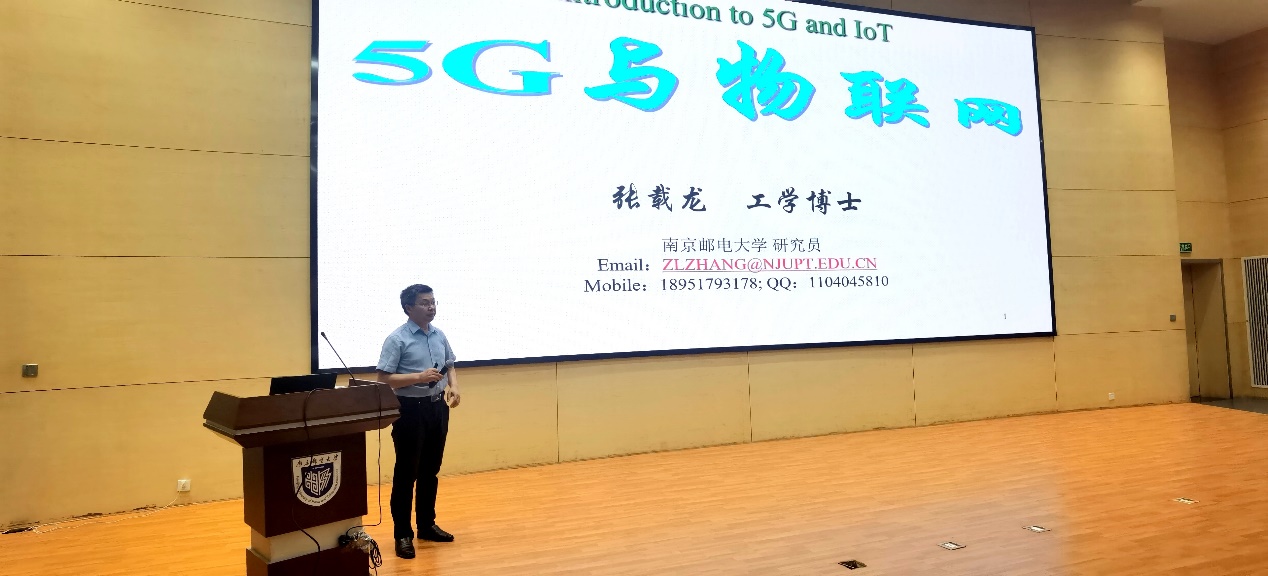 当晚,公司张载龙教授在图书馆四楼报告厅给同学们做了题为《5G与物联网》的科普讲座。张教授从5G和物联网的定义出发,结合大量实际案例娓娓道来5G与物联网的异同与实际应用。张教授的讲座通俗易懂、幽默风趣,台下不时掌声轰鸣,同学们深感受益匪浅!报告之后公司桂兴亮老师又从人才培养、就业质量、知名员工等方面简要介绍了公司的优势特色,在5G时代,为同学们梦想加“邮”!