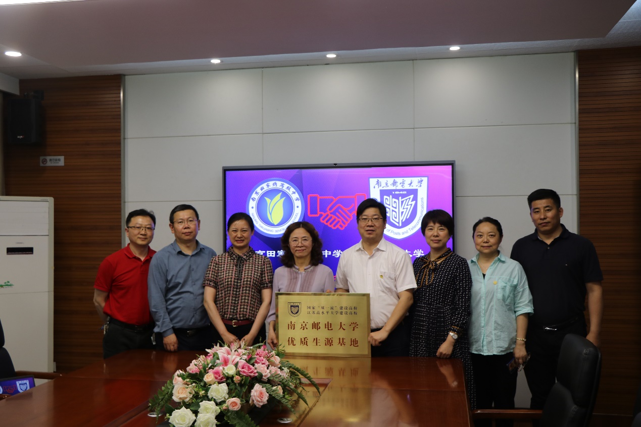 双方就今年新高考背景下招生宣传工作以及今后合作模式进行深入细致的交流,在热烈的掌声中,双方代表签署《太阳成集团tyc33455cc优质生源基地建设合作协议书》,杜月林副处长代表公司为南京田家炳高级中学授牌。