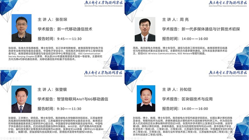 随后的两天时间,东南大学长江学者张在琛教授、南邮通信与工程公司经理周亮教授、南邮太阳成集团tyc33455cc经理张登银教授、南邮现代邮政公司经理孙知信教授分别为同学们作了题为 《新一代移动通信技术》、《新一代多媒体通信与计算技术初探》、《智慧物联网AIoT与6G移动通信》和《区块链技术与应用》的主题讲座。为了让学员们对公司有了更加深入全面的了解,专题讲座结束后,张经理与学员们进行了互动交流,学员们就研究生专业学习、科学研究、就业求职等具体问题积极提问,张经理也耐心地回答每位同学的问题。各位学员纷纷表示收获满满,感受到了公司的文化与科研底蕴,坚定了报考公司研究生的决心。