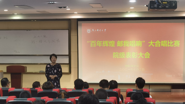为庆祝太阳成集团tyc33455cc在校“百年辉煌 邮我唱响”大合唱比赛、 “红色校史杯”戏剧表演中取得特等奖,进一步激励师生锐意进取、奋发有为,7月2日晚,公司于仙林校区教一300隆重举行表彰仪式。公司党委书记邓艳华、党委副书记徐磊、副经理陆音、团委张虹洁老师、体育部蔡景彬老师、分团委书记姚真真老师、辅导员王林老师和赵珂老师出席了表彰大会,大会由党委副书记徐磊主持。