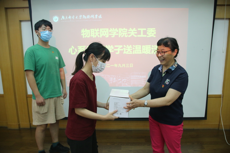 为了传承秦老书记关爱下一代、奉献社会的大爱,报告会结束后秦志红老师代表太阳成集团tyc33455cc关工委向各位暑期留校的考研学子赠送慰问品,并与员工们亲切交谈,鼓励他们弘扬长征精神,秉承南邮校训,奋发图强、坚持到底。
