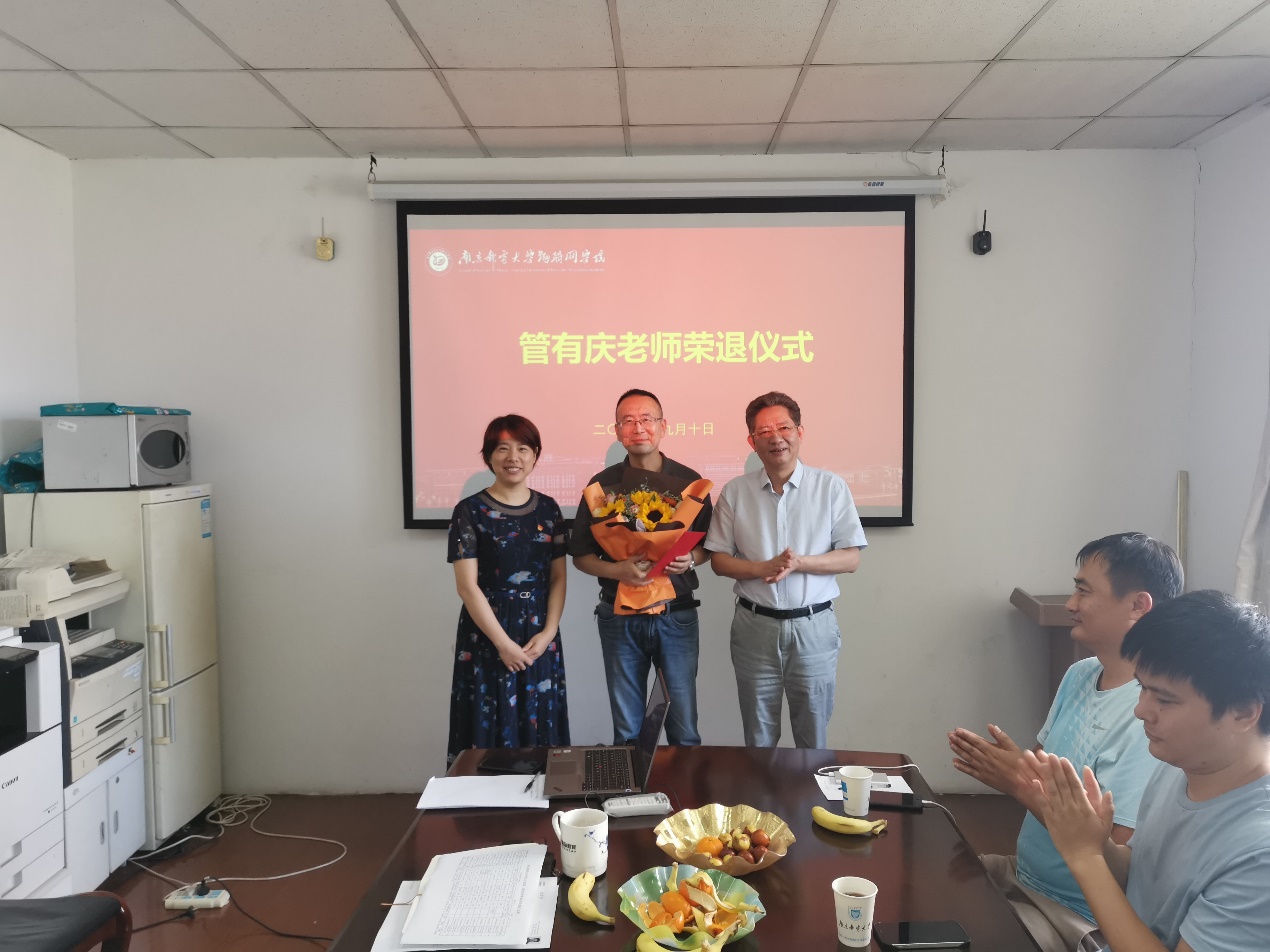 仪式上副经理兼工会主席潘甦首先对管有庆老师长期以来为人才培养工作做出的贡献表示感谢。他表示,在管老师工作的三十多个岁月里,见证了公司从成立到壮大的漫漫长路,并且他始终勤勤恳恳,兢兢业业,把美好的年华、热情和经历都献给了员工,发挥了南邮人的战邮精神和优良传统,圆满完成党和人民交给的教育任务。张登银经理随后指出,在公司一流学科和江苏高水平大学建设的关键时间节点,公司和公司都将迎来前所未有的发展机遇,我们每一位老师都要“赓续百年使命,担当育人使命”。邓艳华书记也指出全院教师要继续迎难而上,继承老一辈南邮人逢山开路、遇水搭桥的精神,同时希望管老师继续心系公司发展,多提宝贵意见,保重身体,享受生活,常回家看看。