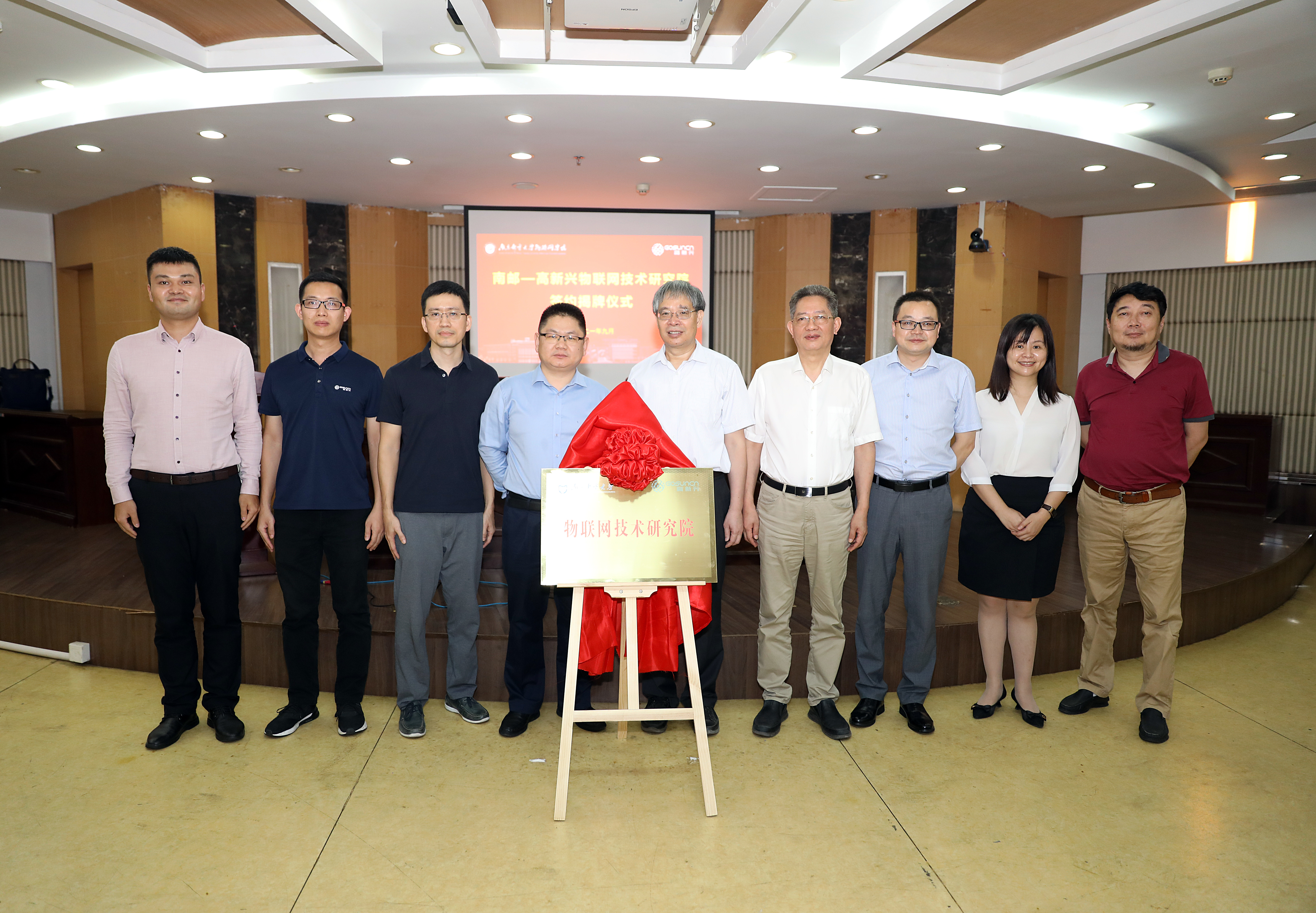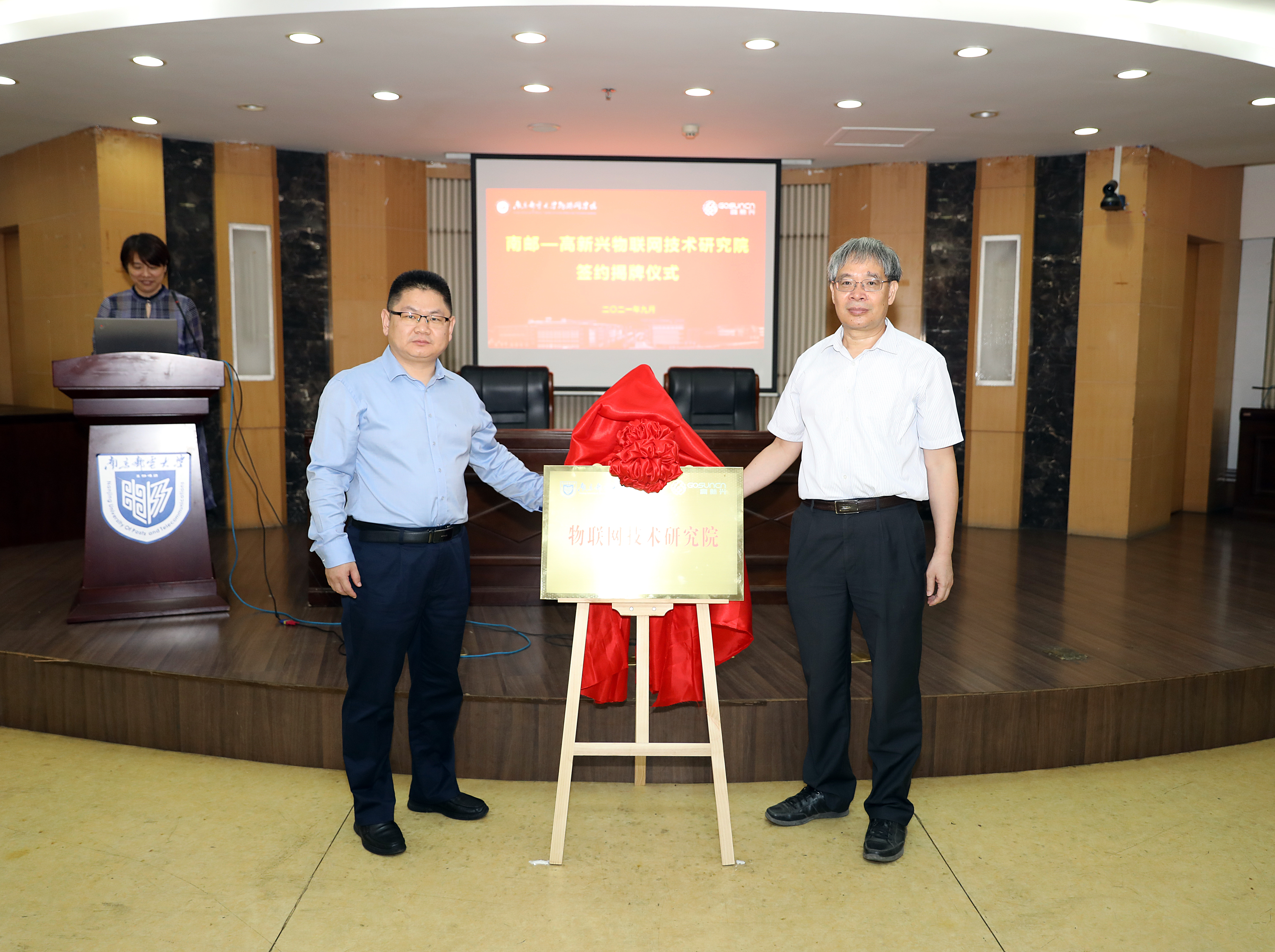 高新兴集团副总裁李晓明和汪联辉副董事长为“南邮—高新兴物联网技术研究院”揭牌