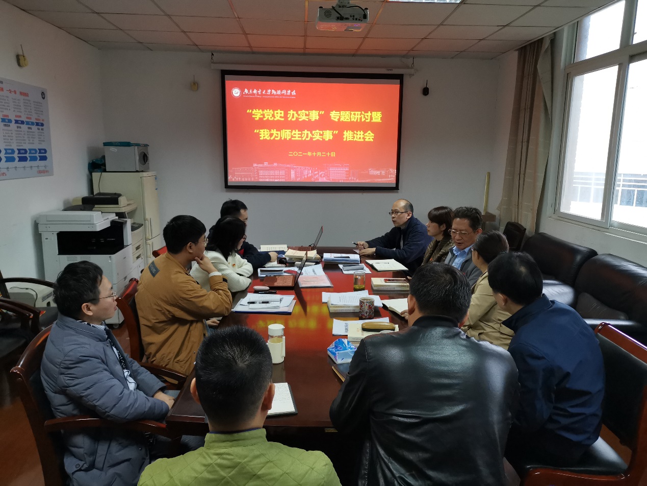 10月20日上午,公司党委召开“学党史 办实事”专题研讨暨“我为师生办实事”推进会,全体党委班子成员、各党支部、院工会代表参加了会议,党委书记邓艳华主持会议。