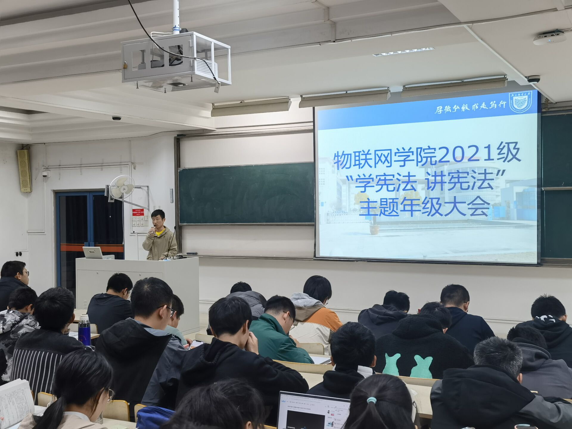 11月17日19:00,公司于仙林教2-401教室召开“学宪法 讲宪法”主题年级大会,会议由20级辅导员赵珂老师主持,21级全体同学参会。