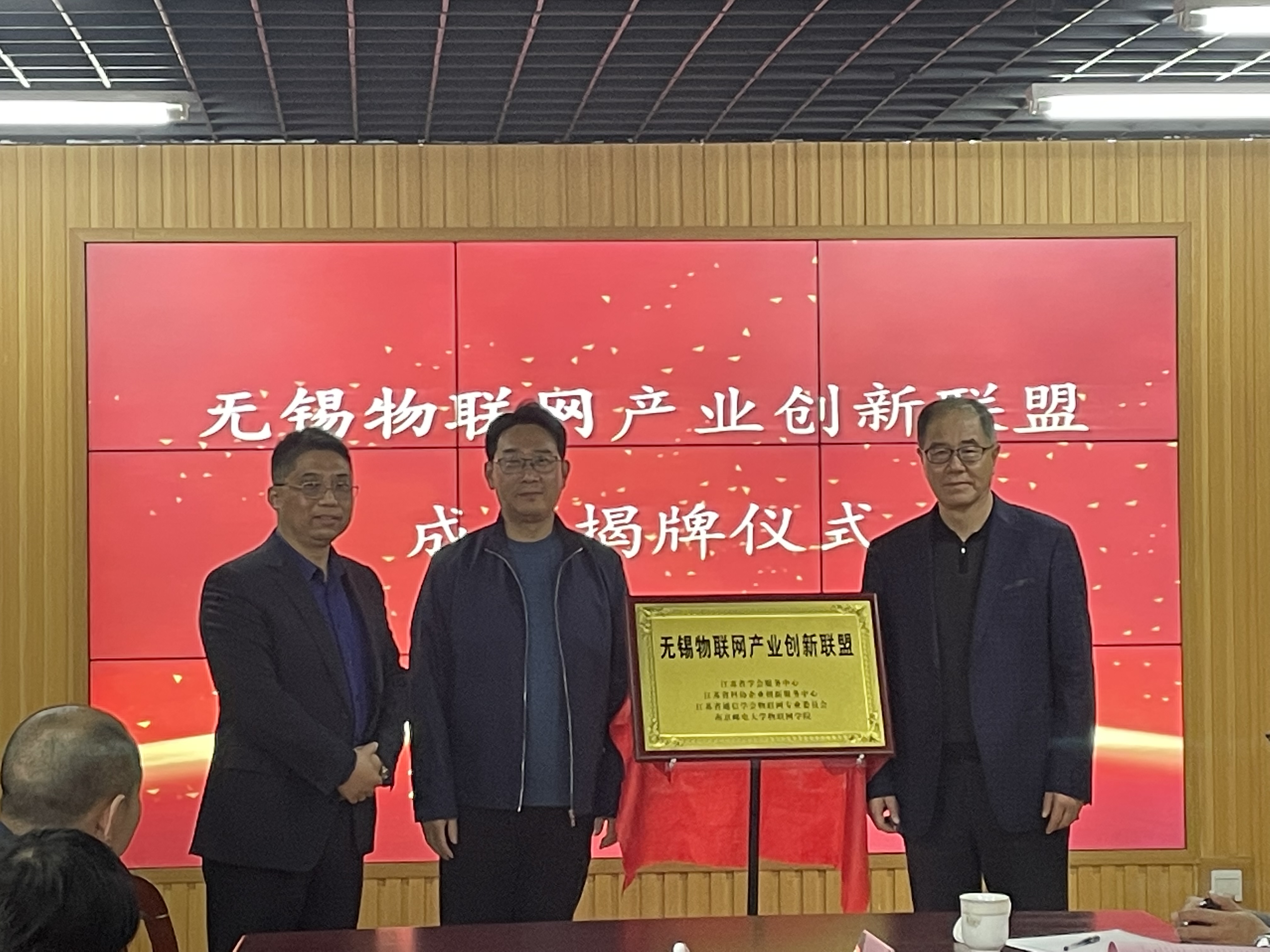 江苏省科协学会服务中心马立涛主任、江苏省通信学会王鹰秘书长共同进行了为无锡物联网产业创新联盟的揭牌,并宣布邀请中科怡海陆波董事长为联盟理事长。