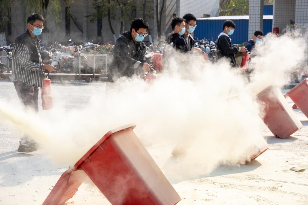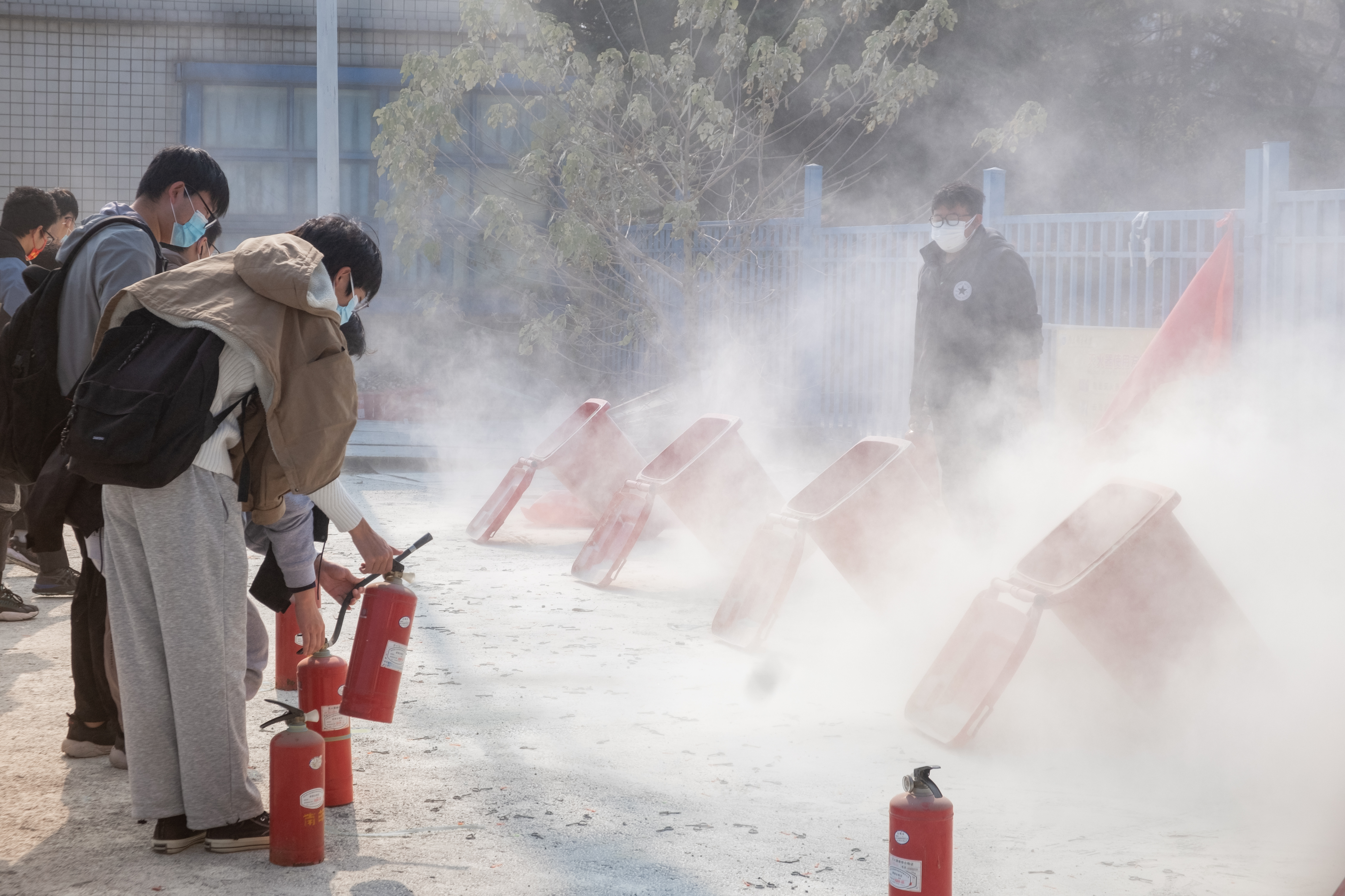 为进一步增强公司师生消防安全意识,提高员工对火灾应急扑救处置能力。公司于11月29日组织全体2021级新生在公司西门进行了灭火器使用操作学习和模拟逃生演练。