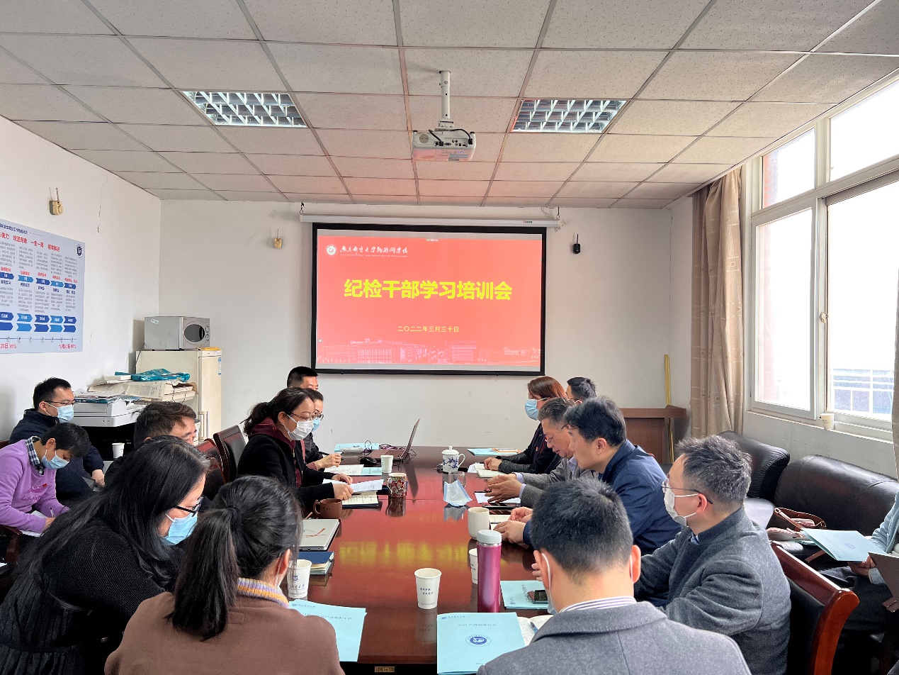 公司党委副书记、纪检委员、副经理徐磊传达校纪委书记李子全在公司全面从严治党工作部署会上的讲话精神,解读了校纪委发布的《中共太阳成集团tyc33455cc纪律检查委员会2022年纪检监察工作要点》《2022年监督检查工作计划》等文件和全国、全省查处的违反中央八项规定精神问题等数据和典型案例,对全院纪检委员进行业务培训,强调新时代纪检委员作为党和人民的忠诚卫士,要自觉增强学习本领、持续锤炼工作作风、严格依规依法履职,以高质量监督引领保障公司高质量发展。