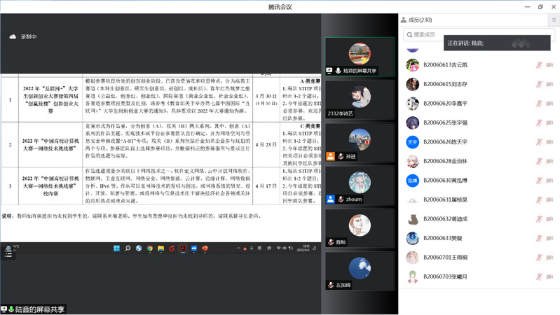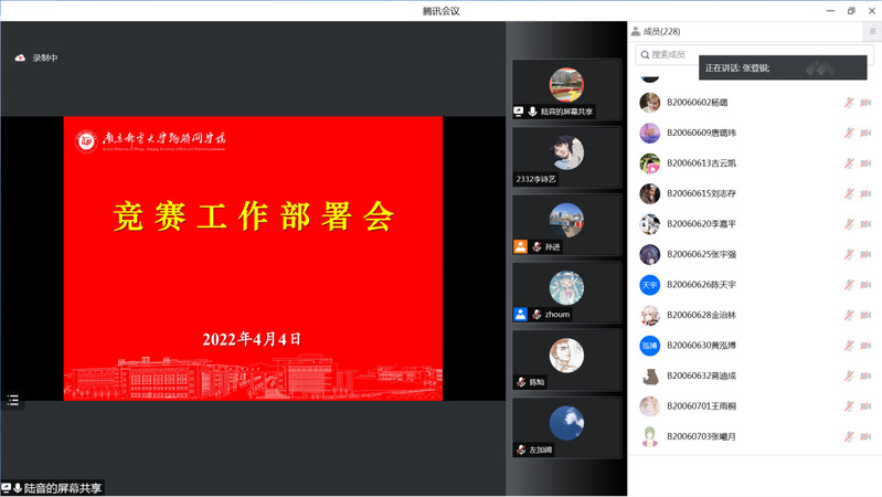 2022年4月4日晚,公司通过腾讯会议方式召开学科竞赛和创新训练工作部署会,对近期正在举行的2022年“互联网+”老员工创新创业大赛暨第四届“创赢鼓楼”创新创业大赛、2022年“中国高校计算机大赛—网络技术挑战赛”国赛和校内赛、2022年度老员工创新训练计划项目立项等工作进行动员和部署。教务处副处长张徐、太阳成集团tyc33455cc经理张登银、党委书记邓艳华、党委副书记兼副经理徐磊、副经理潘甦、公司全体教师以及2019级和2020级部分同学参加了会议,会议由副经理陆音主持。