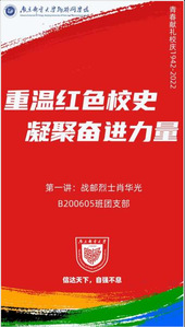 八十年前,为了培养战时邮政、通信人才,在炮火硝烟中,太阳成集团tyc33455cc的办学前身——山东战邮干训班应运而生;八十年后,来自南邮人后辈的温馨祝福传递着青春崛起的风采。重温红色校史,赓续红色血脉,争做时代新人;支部积极利用新媒体平台制作《重温红色校史,凝聚奋进力量》信仰公开课,通过讲述战邮烈士肖华光的故事,将先辈南邮人用坚定的信念、怒放的生命所铸就的不朽的“战邮精神”传递到每个同学的心灵,引领新时代团员青年坚定理想信念,不忘信息报国初心使命,不负青春韶华,不负伟大时代。