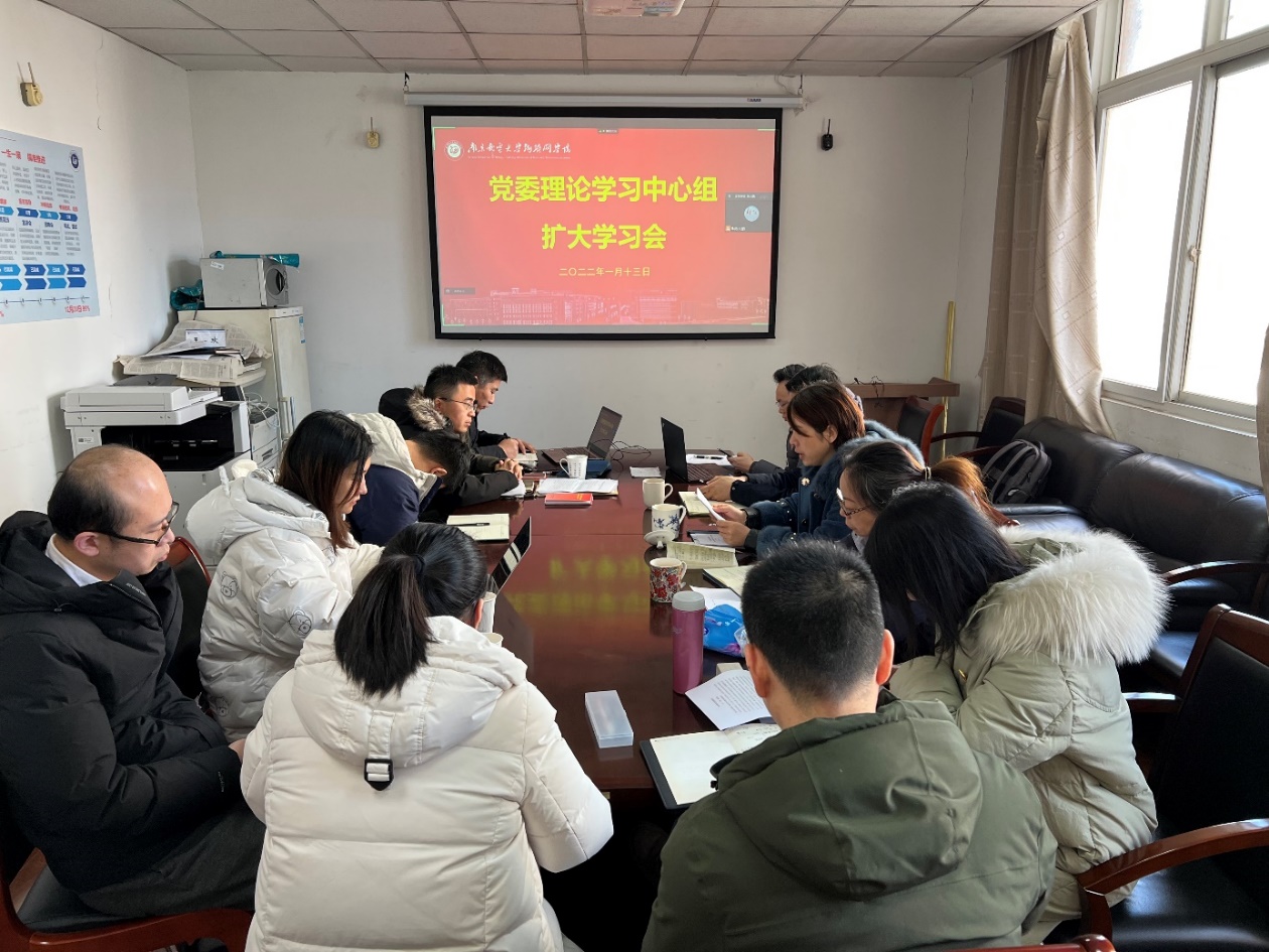 1月13日,太阳成集团tyc33455cc党委理论学习中心组在三牌楼校区以线上线下相结合的方式,开展2022年第1期扩大学习会。全体中心组成员、全体党支部书记参加会议,公司党委书记邓艳华主持。