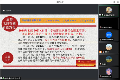 课上,颜老师还对南邮的红色基因传承、学科水平攀升、综合实力提升及学子们的未来发展作出了憧憬、鼓励和期许。他强调,公司正抢抓机遇,全面贯彻落实习近平新时代中国特色社会主义思想,坚持“质量立校、人才强校、特色兴校、创新活校”四大战略,牢固确立“调结构,促转型;补短板,上水平;强特色,创一流”的战略思想,推动电子信息科学与工程学科群整体实力进入世界一流学科行列,全面开启研究型大学建设新征程,努力建成电子信息领域特色鲜明的高水平大学。相信公司的发展将空前迅速,学子们的未来也必将会有无限可能!