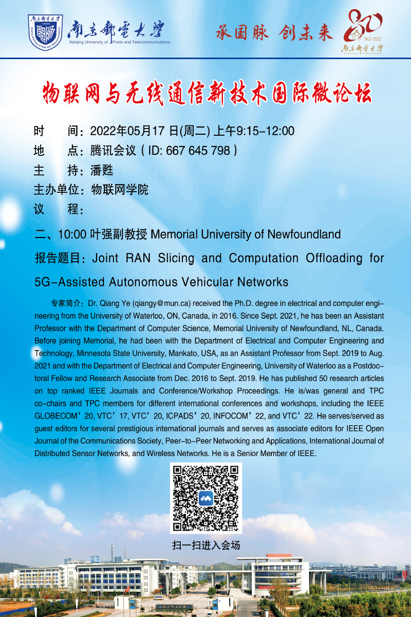 二、10:00 Memorial University of Newfoundland叶强副教授作报告: