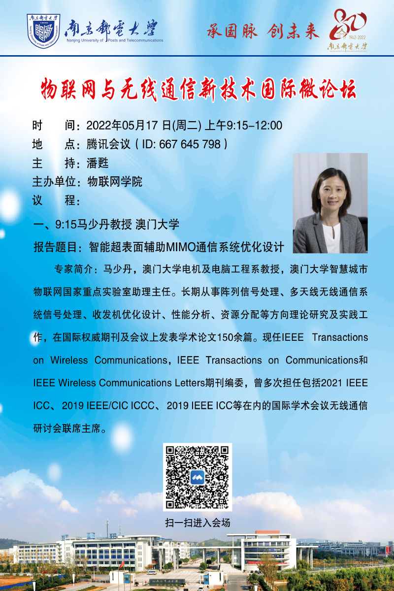 一、9:15澳门大学马少丹教授作报告: