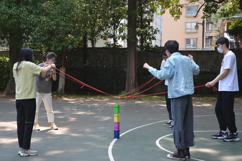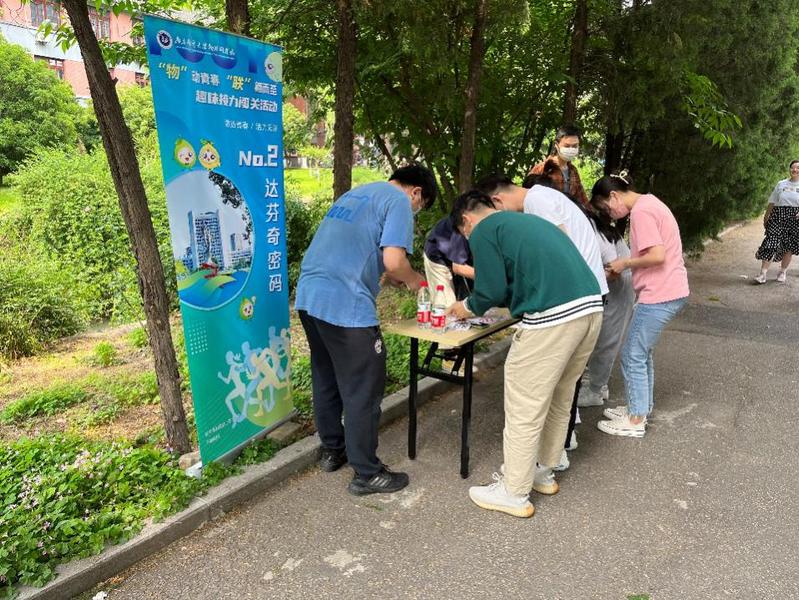 闯关活动依托三牌楼校区优美的校园环境、文化氛围,融入党史、团史、校史文化元素、80周年校庆吉祥物元素,集思想性、文化性、趣味性为一体,为师生带来全新体验。第一场活动共设置了5个站点:从科学会堂到华礼堂、女篮雕塑、篮球场,终点为紫藤长廊,每个地点都有不同的闯关活动:“党团知识知多少”“达芬奇密码”“三人两足”“你划我猜”和“金曲飞花令”。第二场活动增设了“合力建塔”“双背夹球”“珠行万里”等内容,为班级量身定制,不仅促进了班集体文化建设,更进一步提升了员工的参与热情。
